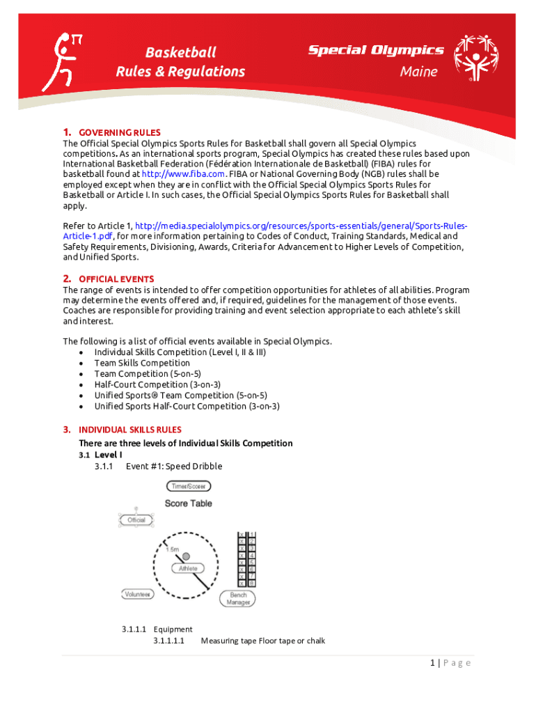 Basketball Rules & RegulationsMaine1. GOVERNING RULES The Official Special Olympics Sports Rules for Basketball shall govern all Special Olympics competitions. As an international sports program,