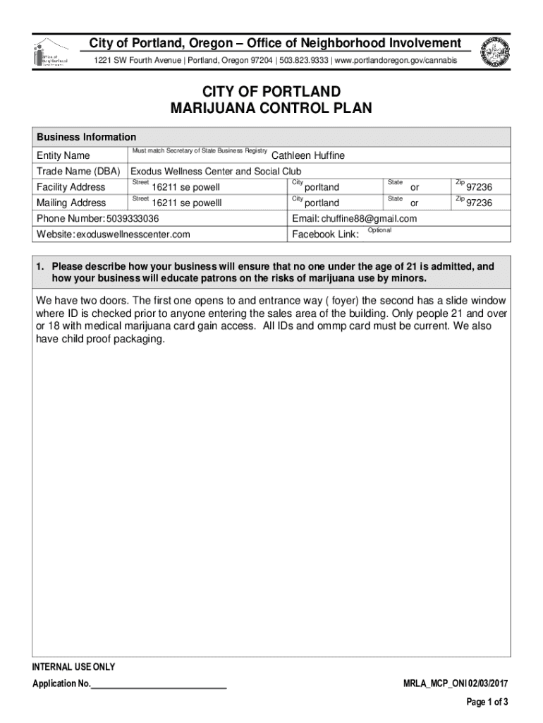 City of Portland, Oregon Office of Neighborhood Involvement 1221 SW Fourth Avenue | Portland, Oregon 97204 | 503.823.9333 | www.portlandoregon.gov/cannabisCITY OF PORTLAND MARIJUANA CONTROL PLAN Business