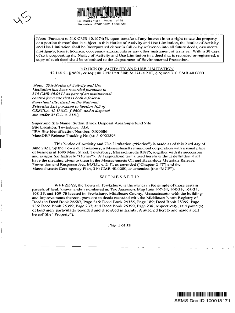 Bk: 35956 Pg: 1 Page: 1 of 45 Recorded: 07/01/2021 11 :56 Note: Pursuant to 310 CMR 40. L 074(5), upon transfer of any interest in or a right to use the property or a portion thereof that is subject