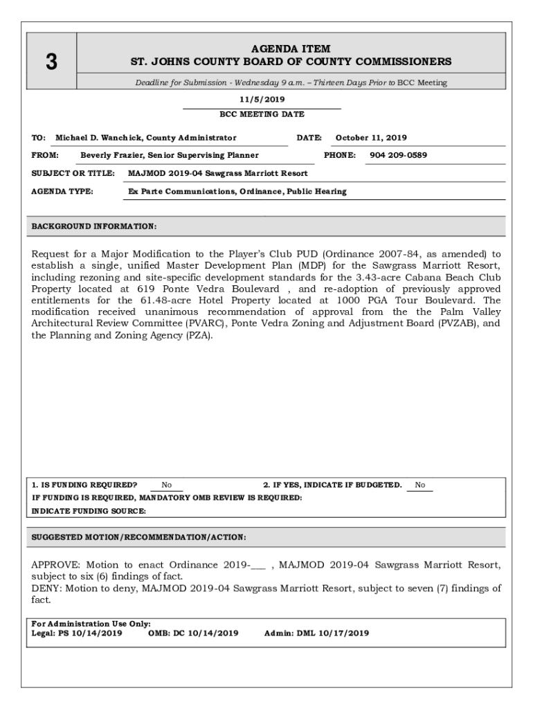 AGENDA ITEM ST. JOHNS COUNTY BOARD OF COUNTY COMMISSIONERS3Deadline for Submission Wednesday 9 a.m. Thirteen Days Prior to BCC Meeting 11/5/2019 BCC MEETING DATE TO:Michael D. Wan chick, County AdministratorFROM:DATE:Beverly
