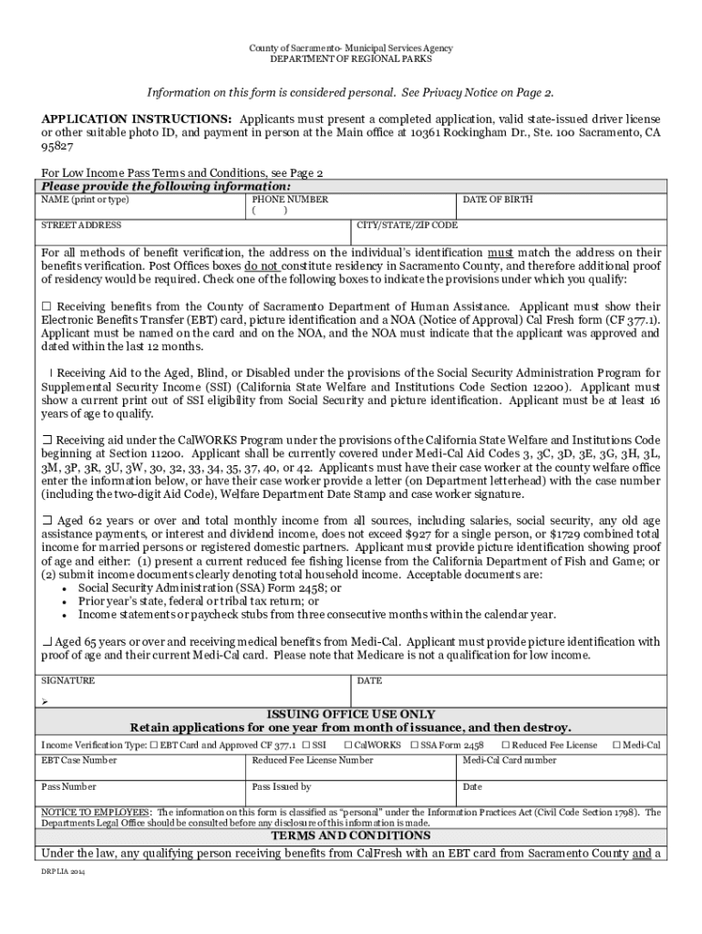County of Sacramento Municipal Services Agency DEPARTMENT OF REGIONAL PARKSInformation on this form is considered personal. See Privacy Notice on Page 2. APPLICATION INSTRUCTIONS: Applicants must