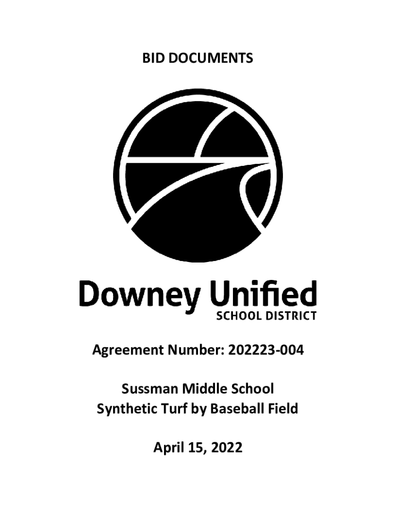 BID DOCUMENTSAgreement Number: 202223004 Suss man Middle School Synthetic Turf by Baseball Field April 15, 2022NOTICE INVITING INFORMAL BIDS Notice is hereby given that the governing board (Board)