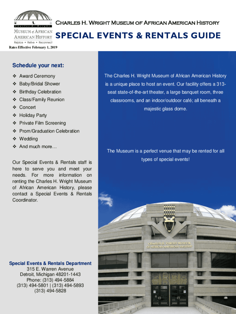 Charles H. Wright Museum of African American HistorySPECIAL EVENTS & RENTALS GUIDE Rates Effective February 1, 2019Schedule your next: Award Ceremony Charles H. Wright Museum of African American History
