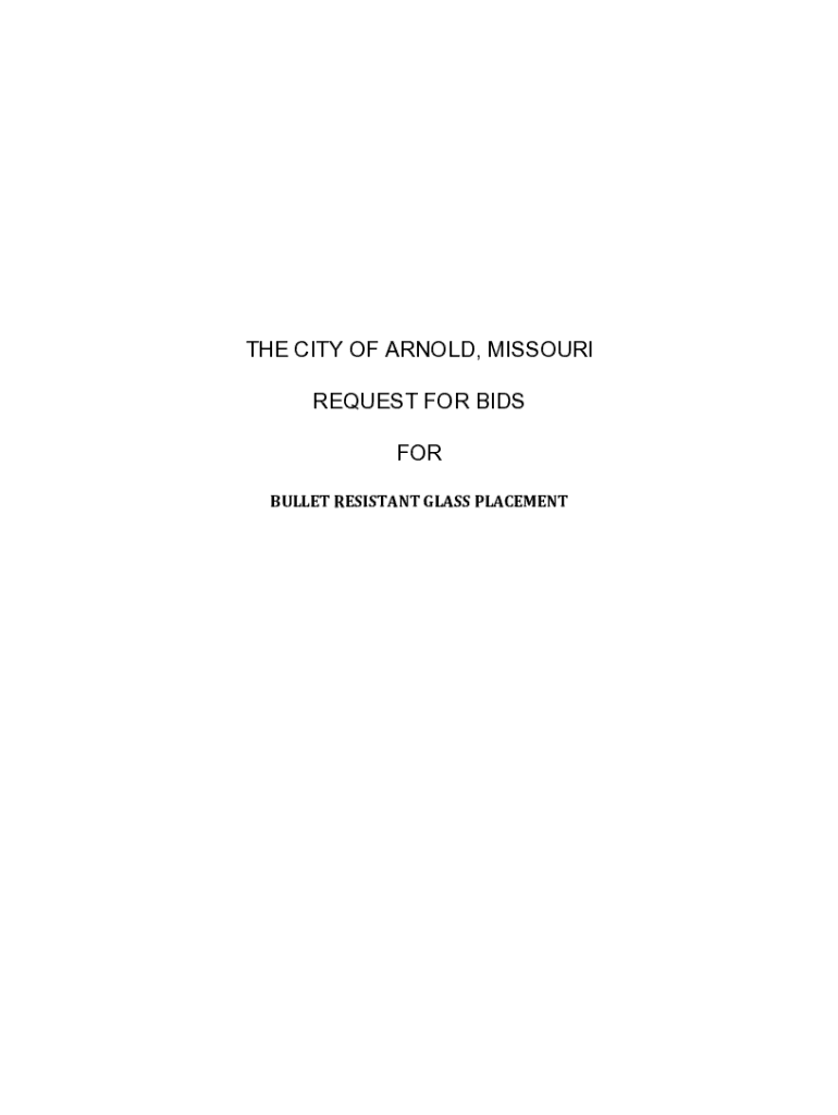 THE CITY OF ARNOLD, MISSOURI REQUEST FOR BIDS FOR BULLETRESISTANTGLASSPLACEMENTINFORMATION FOR BIDDERS 1. Bid Request The City of Arnold is seeking bids for the placement of bullet resistant glass