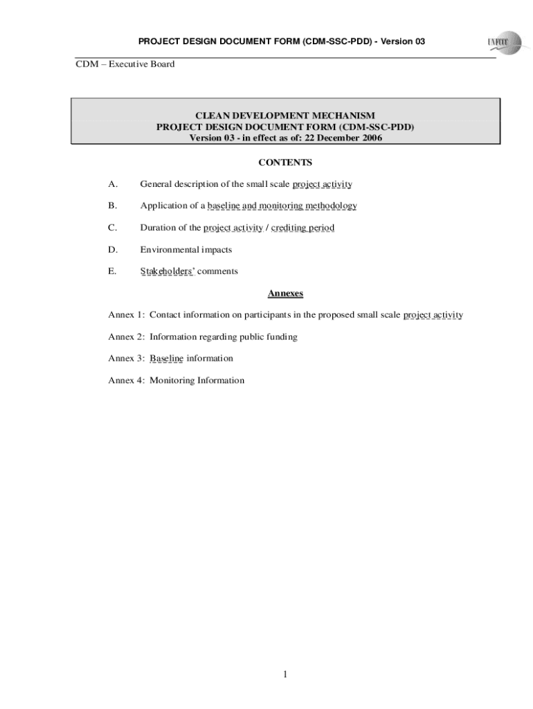 PROJECT DESIGN DOCUMENT FORM (CDMSSCPDD) Version 03CDM Executive Boardman DEVELOPMENT MECHANISM PROJECT DESIGN DOCUMENT FORM (CDMSSCPDD) Version 03 in effect as of: 22 December 2006 CONTENTS A. General
