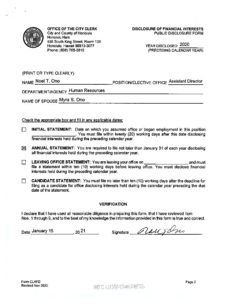 Get the free NAMENoel T. Ono PUBLIC DISCLOSURE FORM 2020 POSITION ...