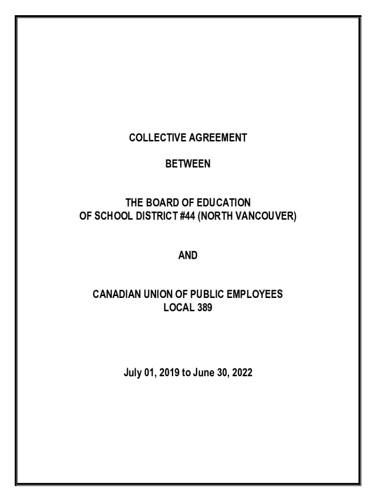 COLLECTIVE AGREEMENT BETWEEN THE BOARD OF EDUCATION OF SCHOOL DISTRICT #44 (NORTH VANCOUVER) AND CANADIAN UNION OF PUBLIC EMPLOYEES LOCAL 389July 01, 2019 to June 30, 2022TABLE OF CONTENTS RECOGNITION