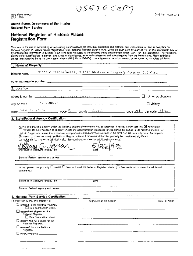 Get the free NPS Form 10-900 (Oct 1990) United States Department of the Interior ...