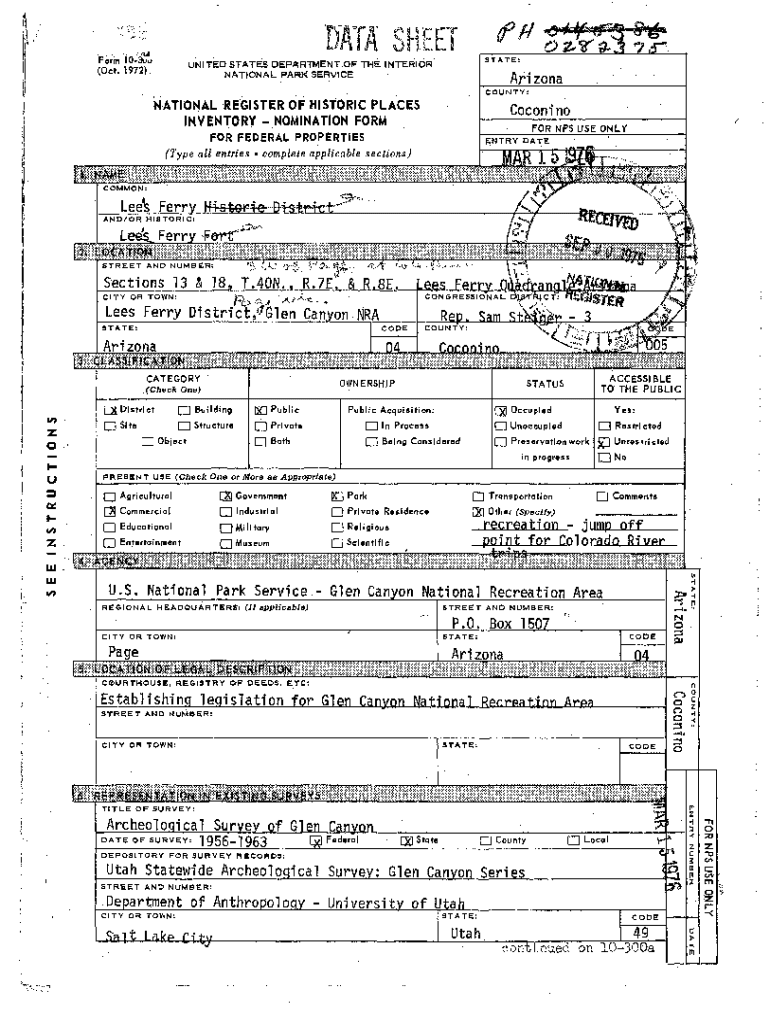 Get the free npshistory.compublicationsnatrDATA SHEET Form 10-306 (Oct. 1972) UNITED STATES DEPAR...
