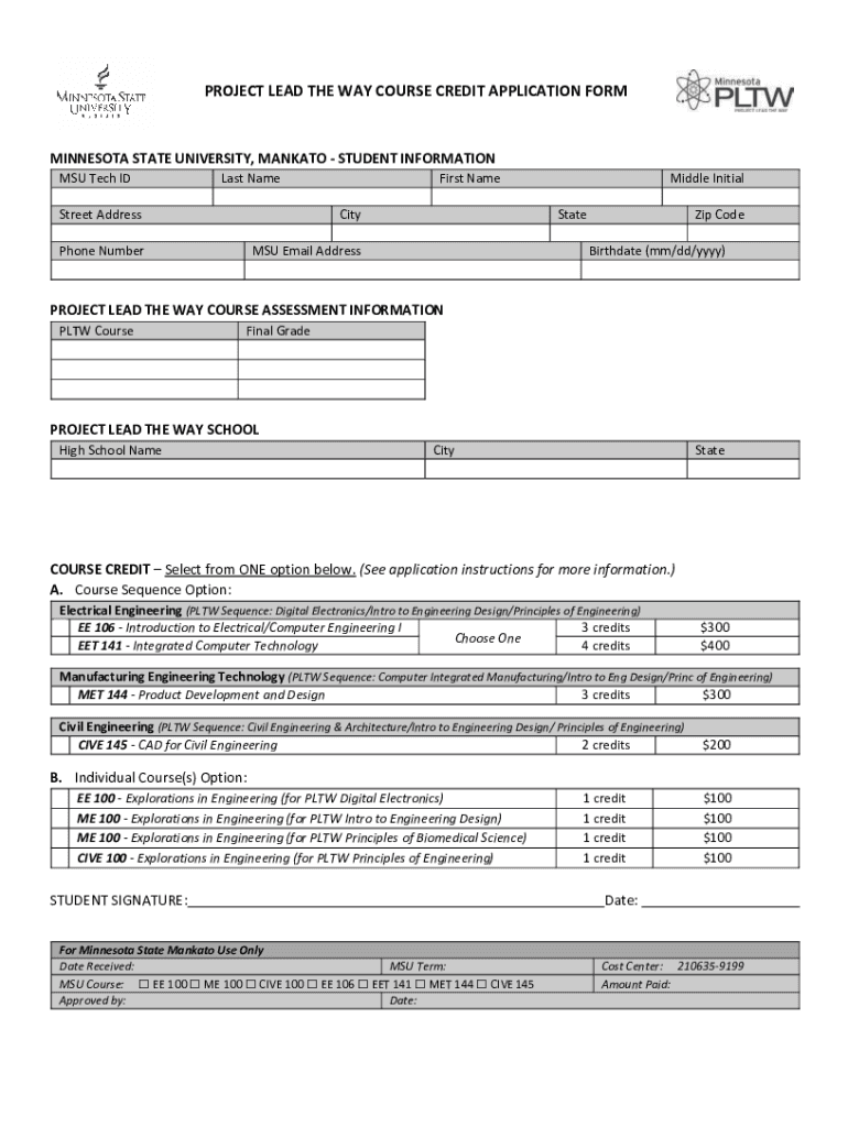 Project Lead The Way (PLTW) Course Credit Application Those who qualify for this program are students from a secondary school who have completed Project Lead the Way courses. Those students have also