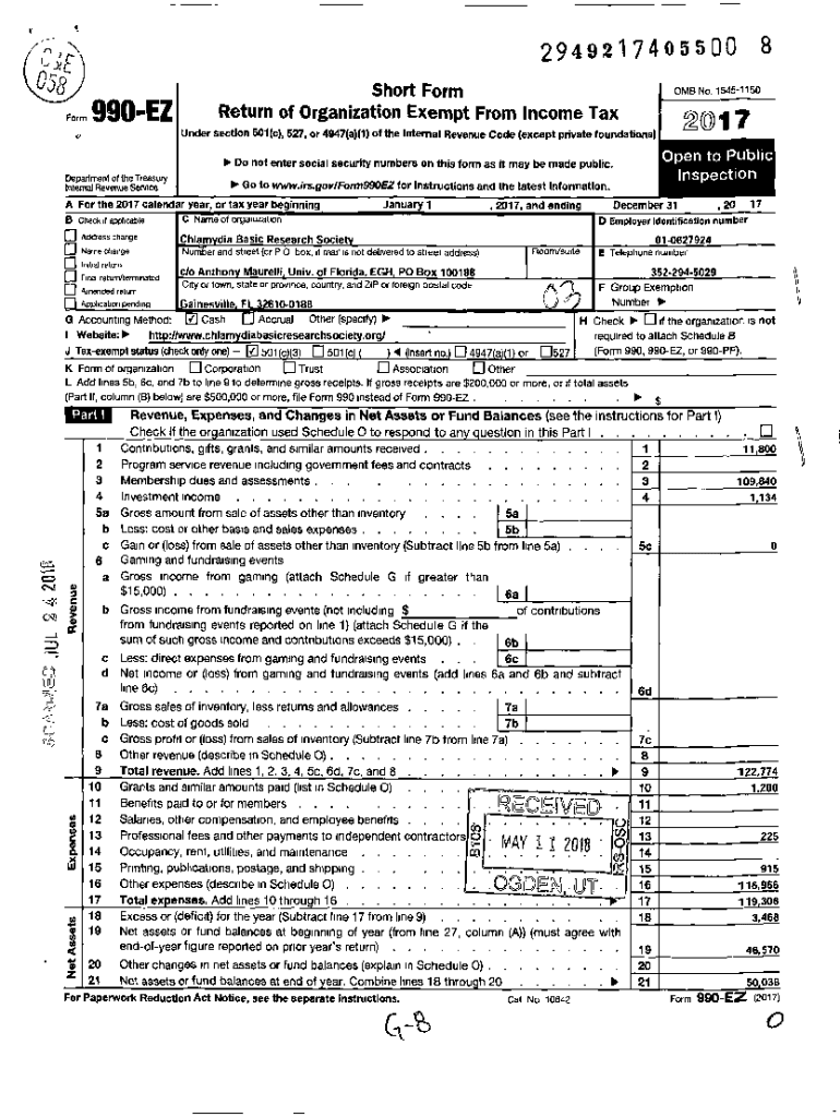 82949217405500 Of!z038Form 990EZShort Form Return of Organization Exempt From Income Tax OMB No. 154511502017Under section 501 (c), 527, or 4947(a)(1) of the Internal Revenue Code (except private