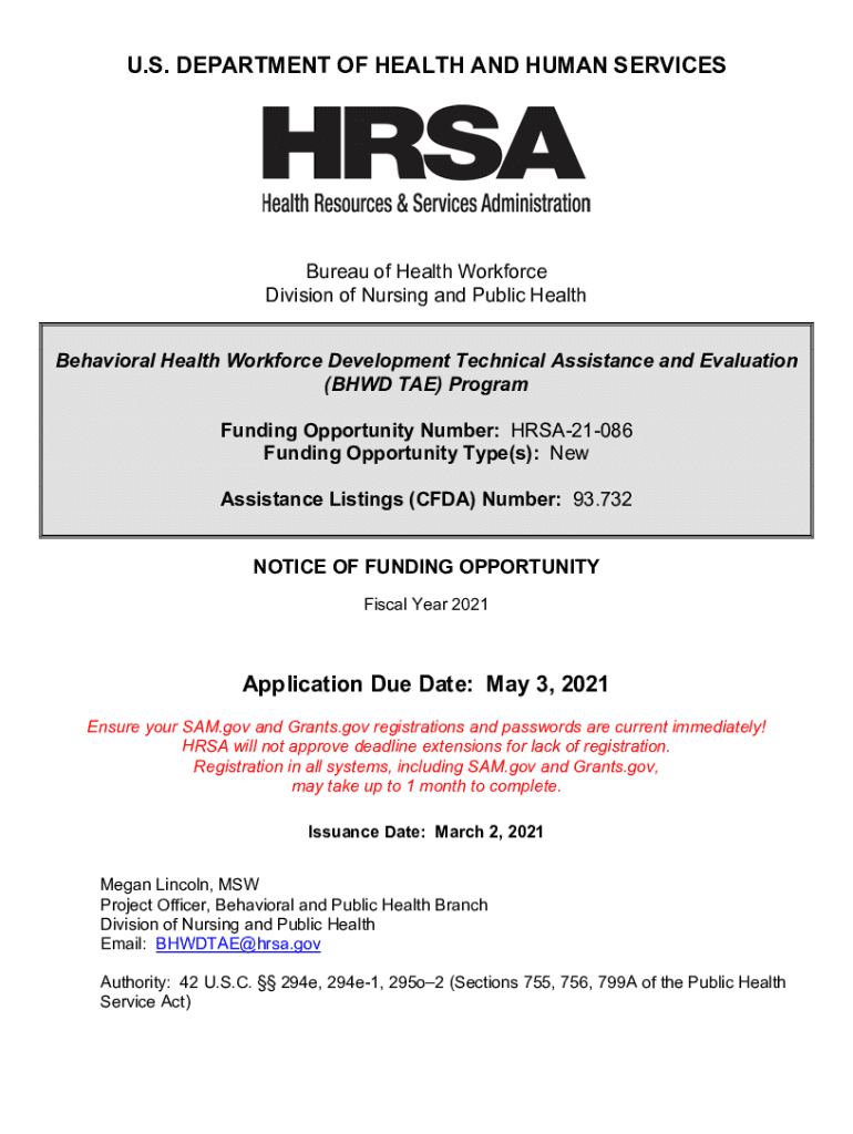 Get the free BHW HRSA-21-086 (UK8) BHWD TAEFinal for IOA Review v2Tracked. Behavioral Health Work...