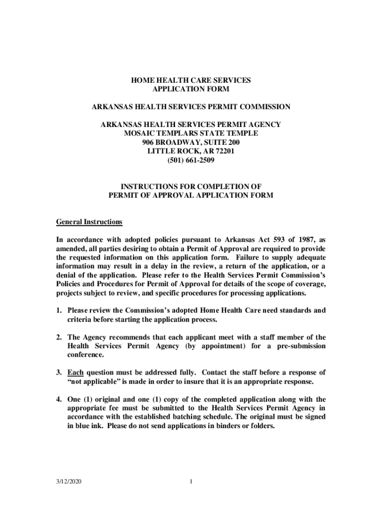 HOME HEALTH CARE SERVICES APPLICATION FORM ARKANSAS HEALTH SERVICES PERMIT COMMISSION ARKANSAS HEALTH SERVICES PERMIT AGENCY MOSAIC TEMPLAR STATE TEMPLE 906 BROADWAY, SUITE 200 LITTLE ROCK, AR 72201