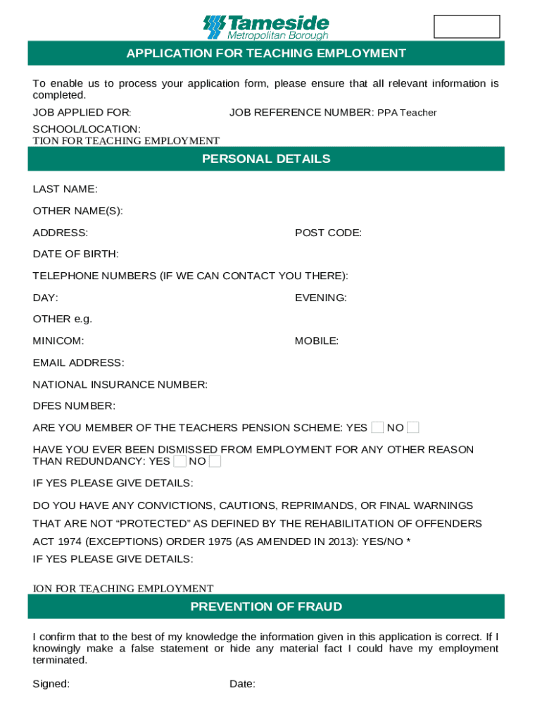 What is APPLICATION FOR TEACHING EMPLOYMENT Form?