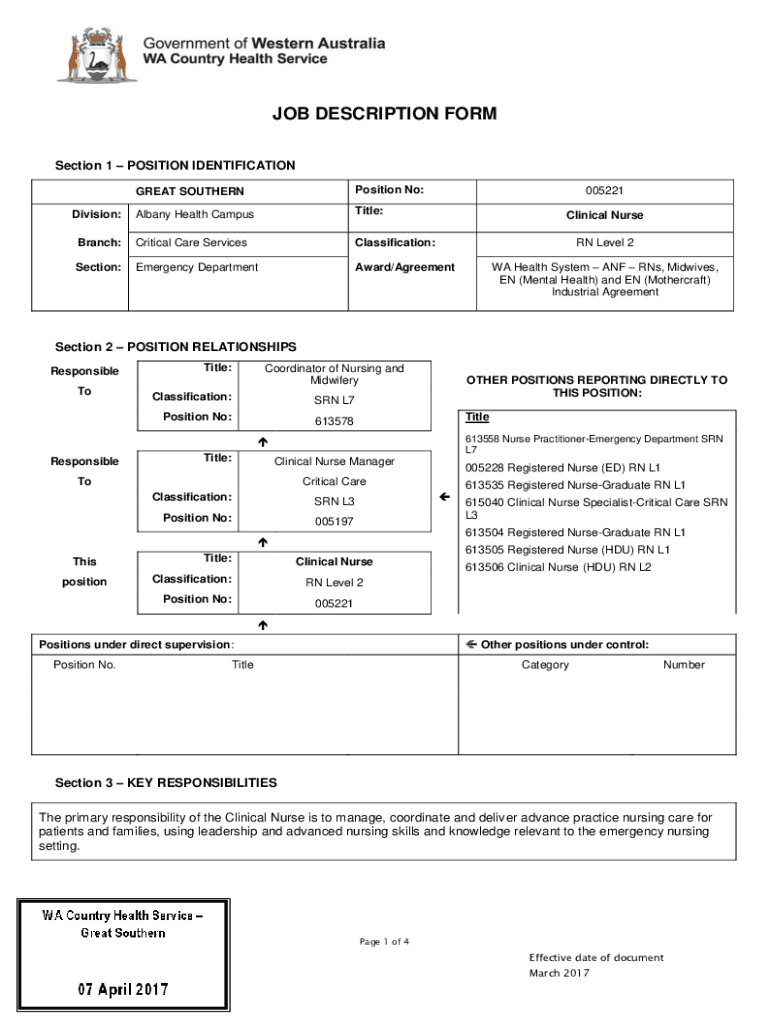 Get the free search.jobs.wa.gov.aufilesvacanciesGREAT SOUTHERN Position No: Division: Title: Clin...
