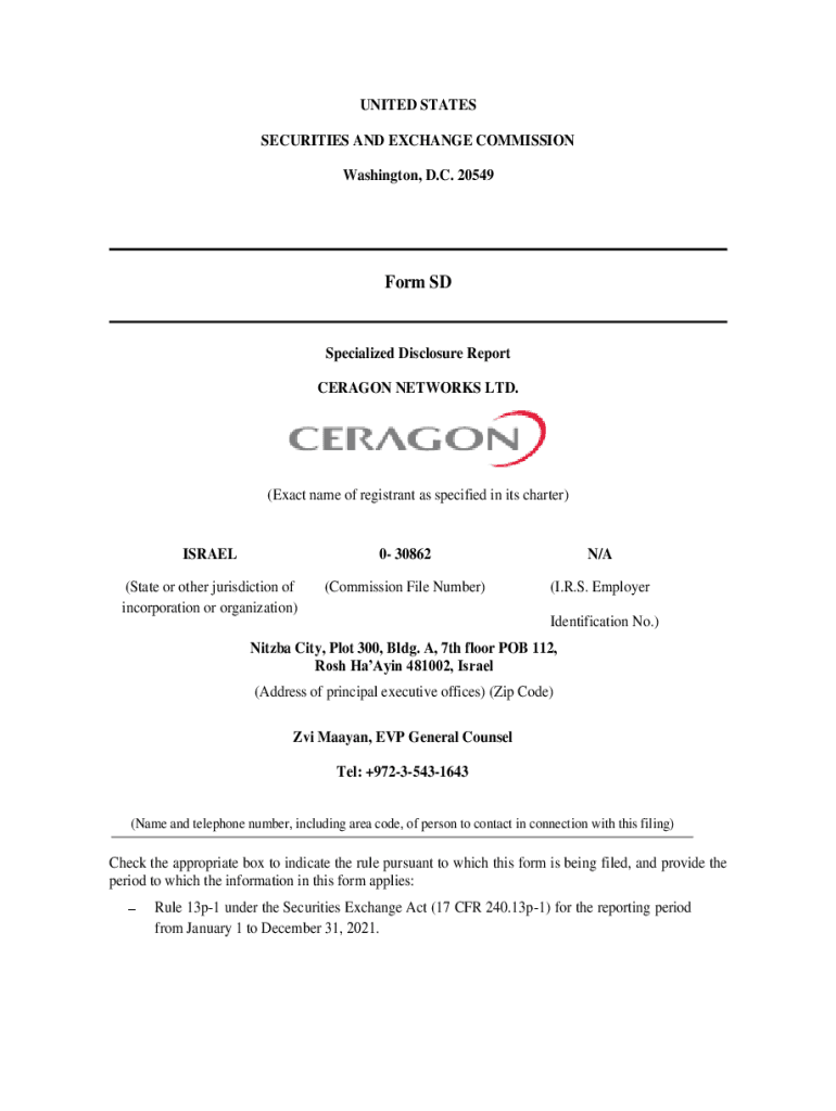 UNITED STATES SECURITIES AND EXCHANGE COMMISSION Washington, D.C. 20549Form Specialized Disclosure Report DRAGON NETWORKS LTD.(Exact name of registrant as specified in its charter)ISRAEL0 30862 N/A(State