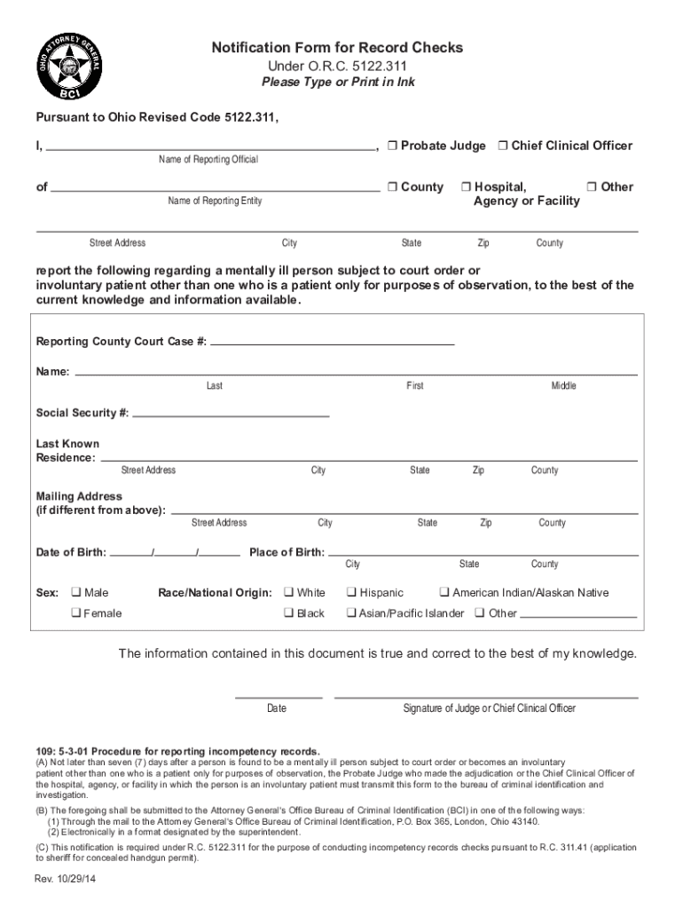 Get the free Notification Form for Record Checks - Under ORC 5122.311 ...