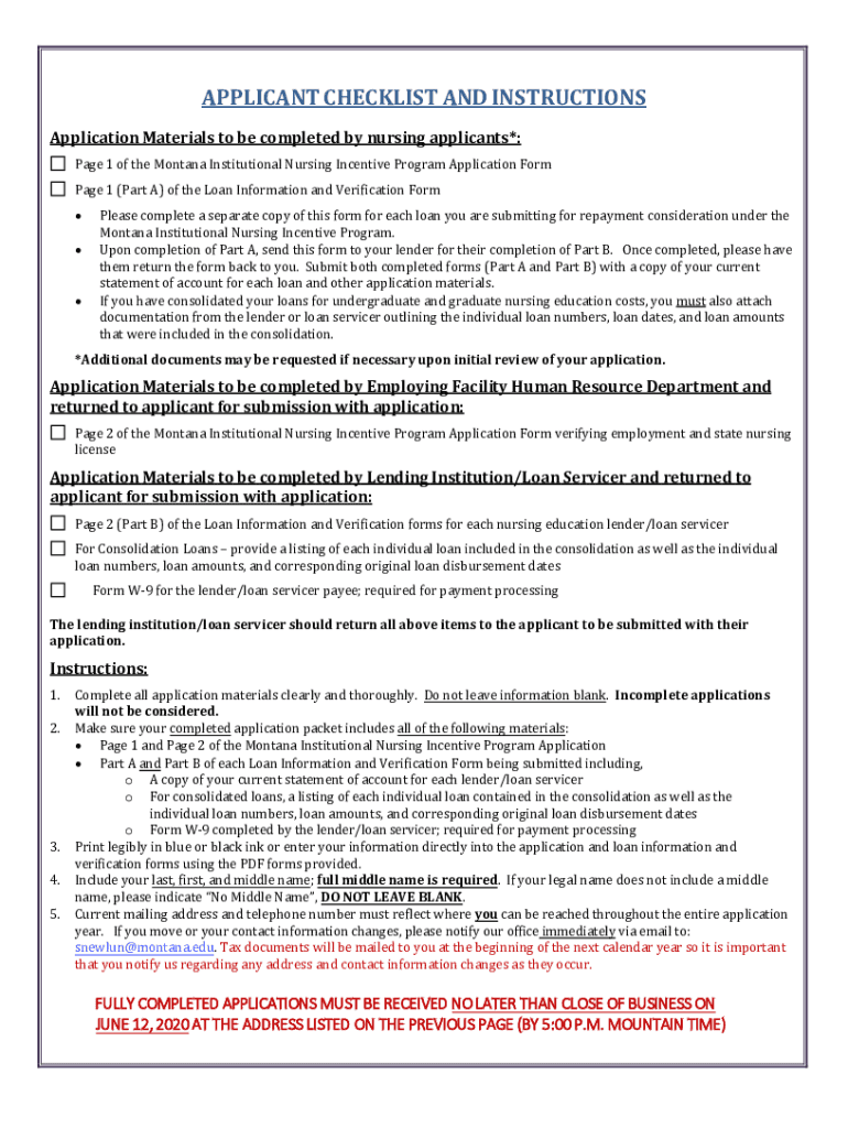 MONTANA INSTITUTIONAL NURSING INCENTIVE PROGRAM APPLICATION AND INSTRUCTIONS Applications for the Montana Institutional Nursing Incentive Program are reviewed and considered once each year. The current