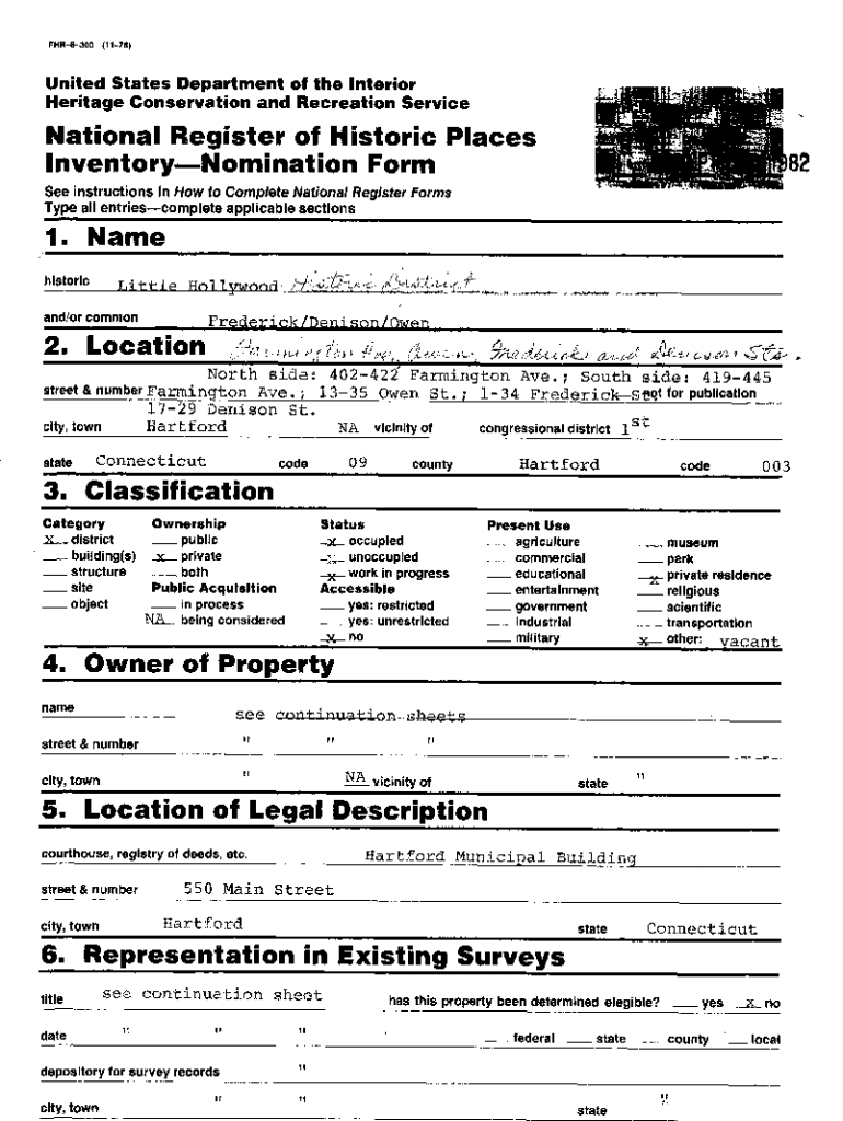 FHR8300 (1178)United States Department of the Interior Heritage Conservation and Recreation ServiceNational Register of Historic Places Inventory Nomination Form See instructions in How to Complete