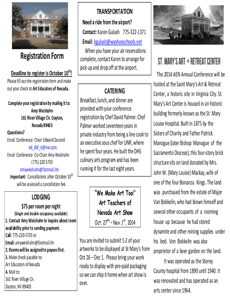 TRANSPORTATIONRegistration Form Deadline to register is October 10th! Need a ride from the airport? Contact: Karen Goulash 7753221371 Email: kgulash@washoeschools.net When you have your air reservations