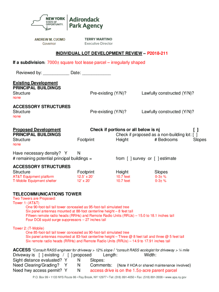 INDIVIDUAL LOT DEVELOPMENT REVIEW P2018211 If a subdivision: 7000 square foot lease parcel irregularly shaped Reviewed by: ___ Date: ___ Existing Development PRINCIPAL BUILDINGS StructurePreexisting