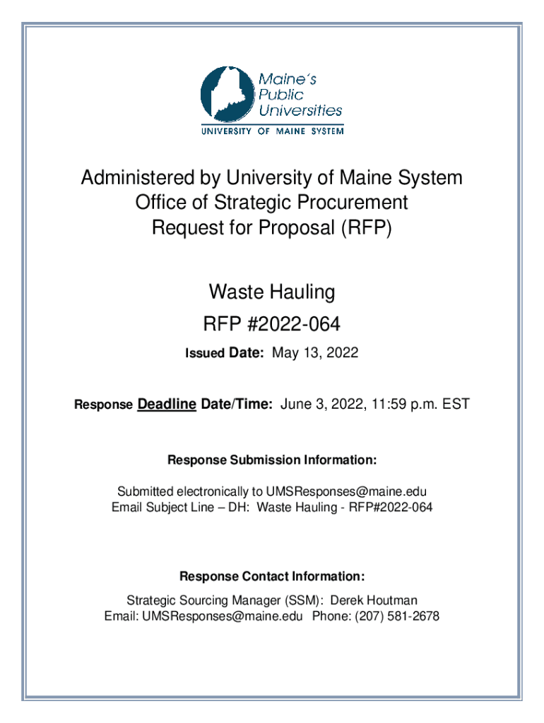 Get the free www.maine.edu052022-064-RFP-Waste-HaulingAdministered by University of Maine System ...