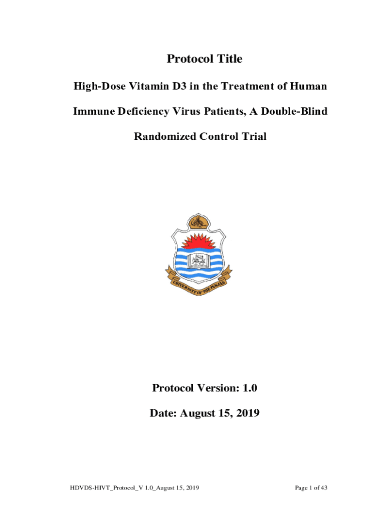 Protocol Title Highest Vitamin D3 in the Treatment of Human Immune Deficiency Virus Patients, A DoubleClick Randomized Control TrialProtocol Version: 1.0 Date: August 15, 2019HDVDSHIVT_Protocol_V