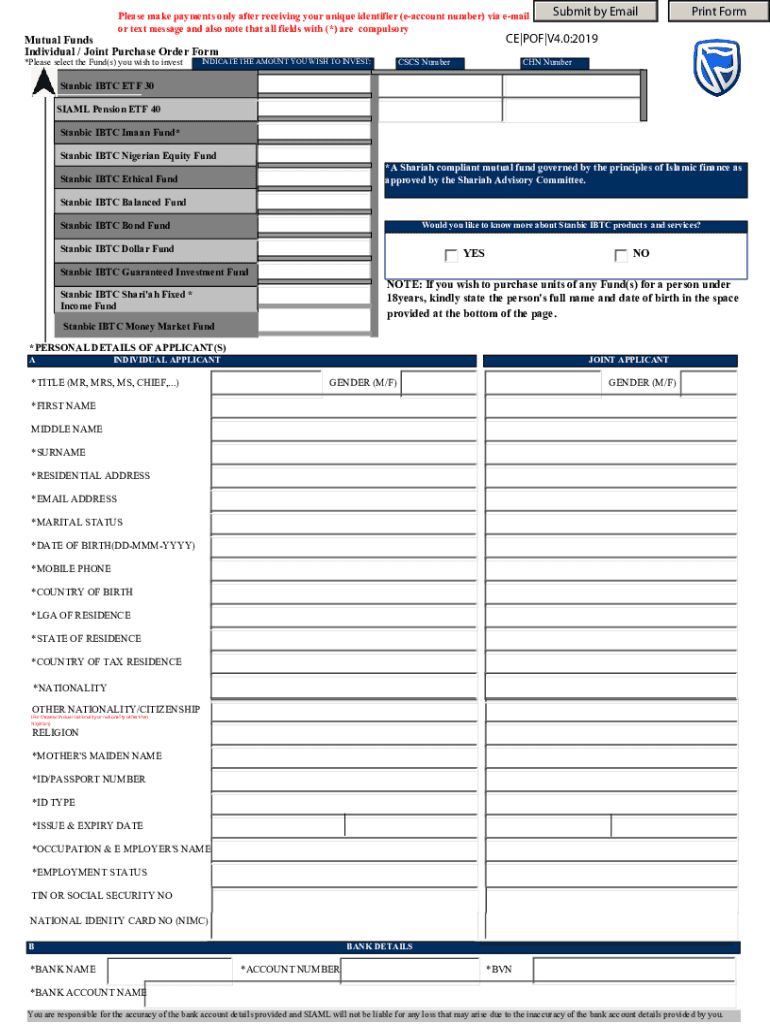 Please make payments only after receiving your unique identifier (account number) via email or text message and also note that all fields with (*) are compulsoryPrint Force|POF|V4.0:2019Mutual Funds