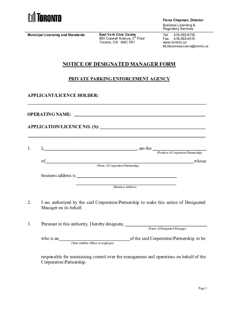Get the free Notice of Designated Manager Form - Private Parking Enforcement Agency