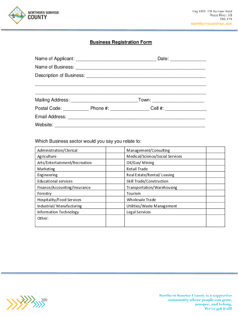 Business Registration Forename of Applicant: ___ Date: ___ Name of Business: ___ Description of Business: ___ ___ ___ Mailing Address: ___Town: ___ Postal Code: ___ Phone #: ___ Cell #: ___ Email