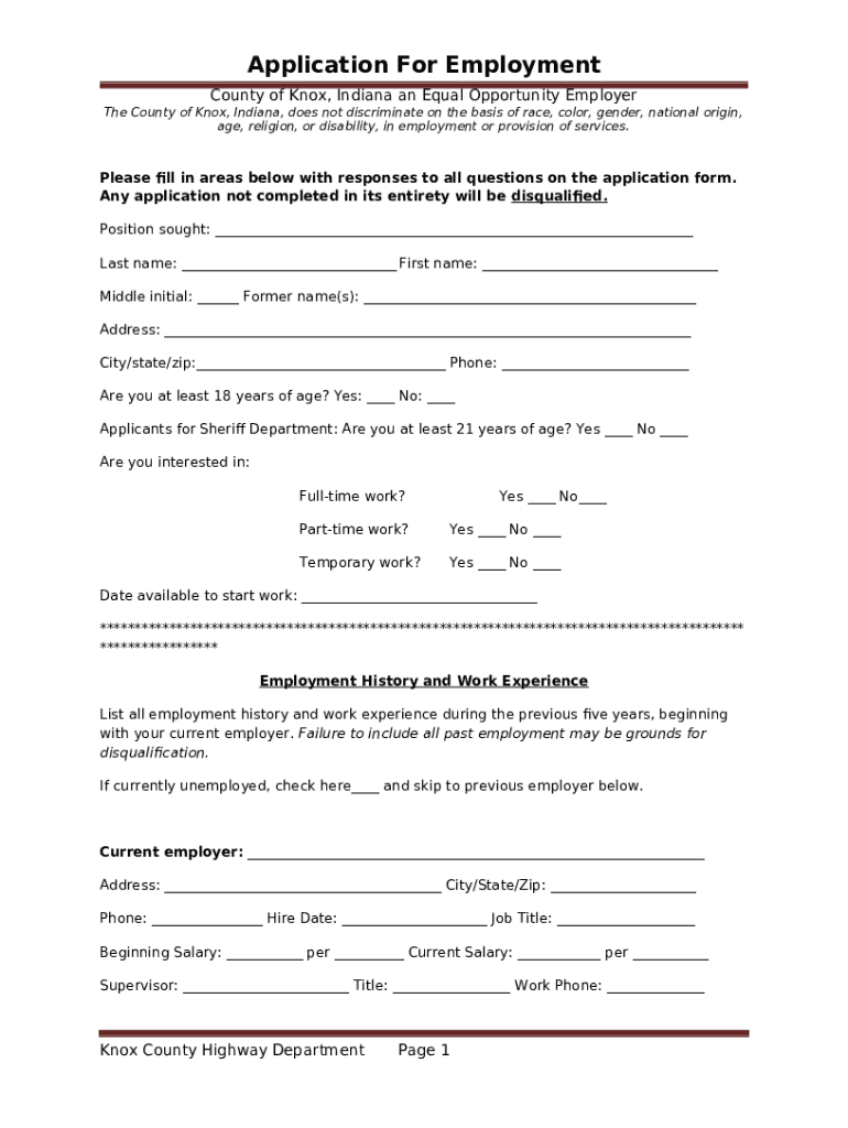 The Application For Employment is a fillable form in MS Word extension needed to be submitted to the relevant address in order to provide specific info. It has to be filled-out and signed, which can be done in hard copy, or with the help of a certain software such as PDFfiller. It allows to complete any PDF or Word document directly in your browser, customize it depending on your purposes and put a legally-binding e-signature. Once after completion, the user can easily send the Application For Employment to the relevant receiver, or multiple ones via email or fax. The template is printable too due to PDFfiller feature and options presented for printing out adjustment. Both in electronic and physical appearance, your form will have got clean and professional outlook. Also you can turn it into a template to use it later, so you don't need to create a new document over and over. Just customize the ready template.