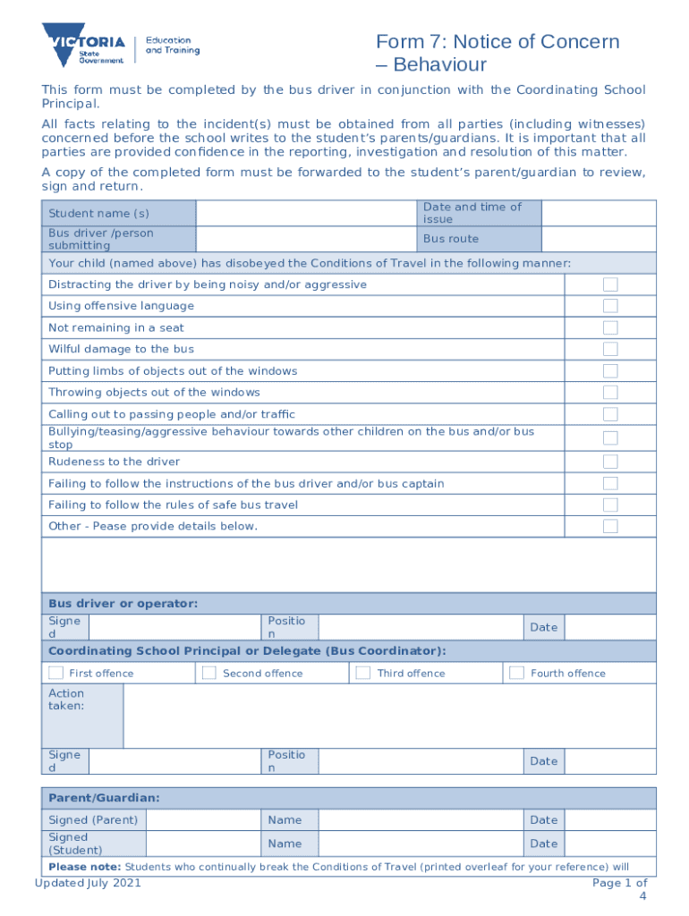 Before to fill out 7 - Notice of concern - behaviour Word template, remember to prepared all the information required. It is a mandatory part, as far as errors may trigger unwanted consequences from re-submission of the whole entire word template and filling out with missing deadlines and even penalties. You should be especially observative filling out the figures. At first sight, this task seems to be not challenging thing. Nevertheless, it is easy to make a mistake. Some people use such lifehack as keeping everything in another document or a record book and then insert this into documents' sample. Anyway, put your best with all efforts and provide valid and genuine information with your 7 - Notice of concern - behaviour word form, and doublecheck it while filling out all necessary fields. If you find any mistakes later, you can easily make some more amends when using PDFfiller editor without missing deadlines.
