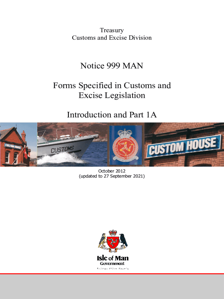Treasury Customs and Excise DivisionNotice 999 MAN Forms Specified in Customs and Excise Legislation Introduction and Part 1AOctober 2012 (updated to 27 September 2021)1Contents IntroductionPart 1AForms