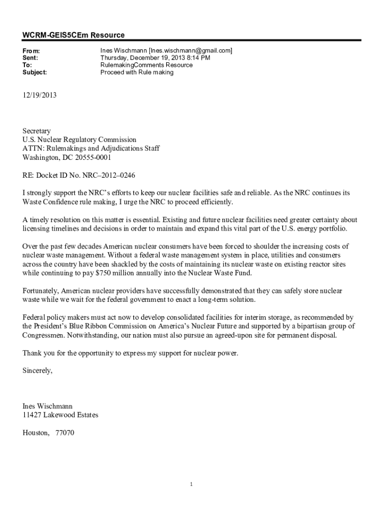 WCRMGEIS5CEm Resource From: Sent: To: Subject:Ines Eichmann [Ines.wischmann@gmail.com] Thursday, December 19, 2013 8:14 PM RulemakingComments Resource Proceed with Rule making12/19/2013Secretary U.S.