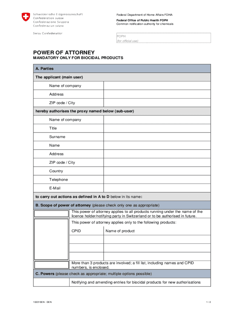 Federal Department of Home Affairs FHA Federal Office of Public Health FOCH Common notification authority for chemicalsFOPH (for official use)POWER OF ATTORNEY MANDATORY ONLY FOR SOCIAL PRODUCTS A.