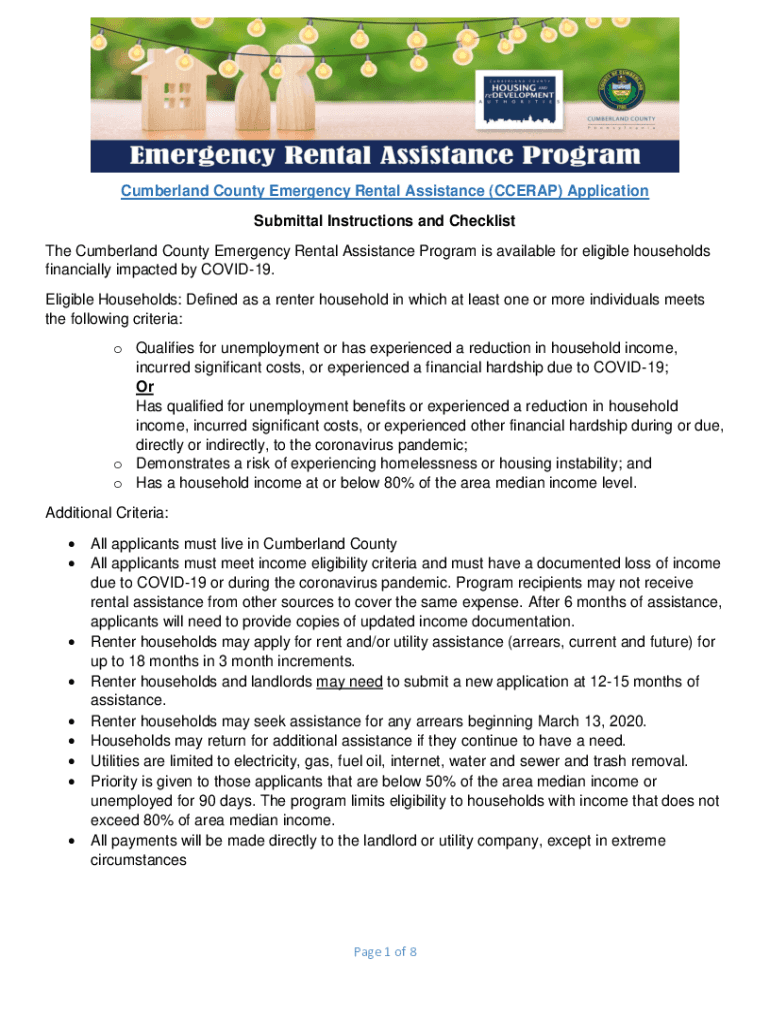 Cumberland County Emergency Rental Assistance (CC ERAP) Application Submittal Instructions and Checklist The Cumberland County Emergency Rental Assistance Program is available for eligible households