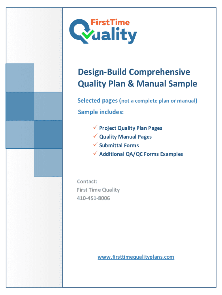 DesignBuild Comprehensive Quality Plan & Manual Sample Selected pages (not a complete plan or manual) Sample includes: Project Quality Plan Pages Quality Manual Pages Submittal Forms Additional QA/QC