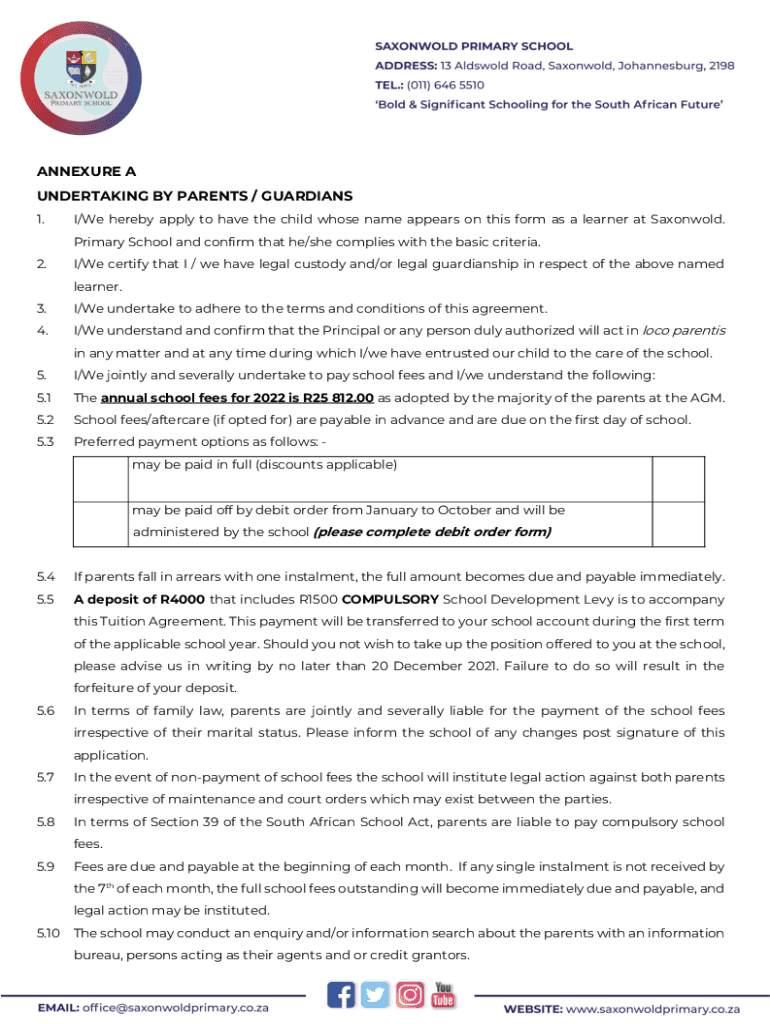 Appendix A UNDERTAKING BY PARENTS / GUARDIANS 1. I/We hereby apply to have the child whose name appears on this form as a learner at Saxon would. Primary School and confirm that he/she complies with