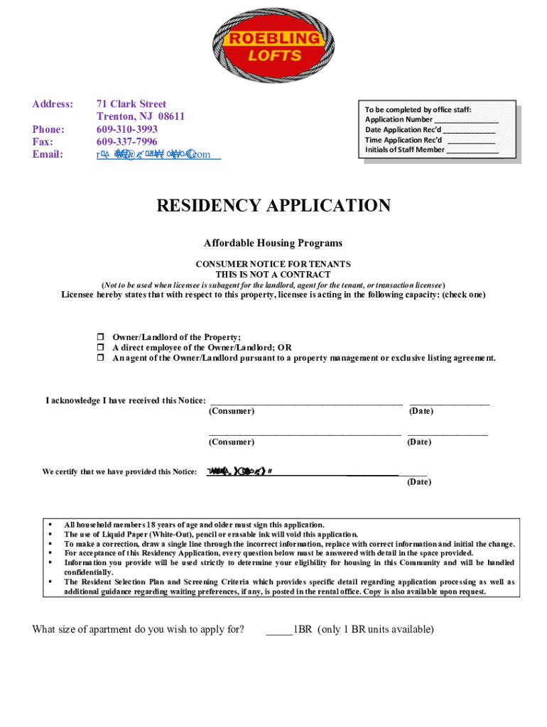 Address: Phone: Fax: Email:71 Clark Street Trenton, NJ 08611 6093103993 6093377996 rHQWDOV@URHEOLQJORIWV.comTo be completed by office staff: Application Number ___ Date Application Recd ___ Time Application