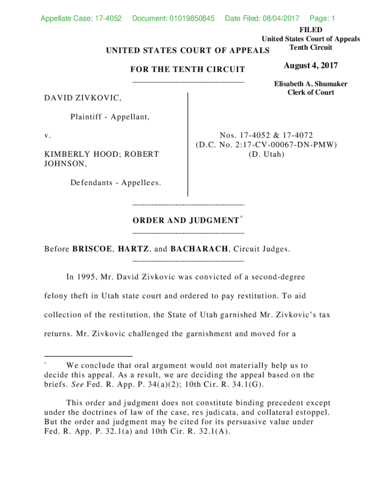 Appellate Case: 174052Document: 01019850845Date Filed: 08/04/2017Page: 1FILED United States Court of Appeals Tenth Circuit UNITED STATES COURT OF APPEALS THE TENTH CIRCUIT ___ DAVID DJOKOVIC, August