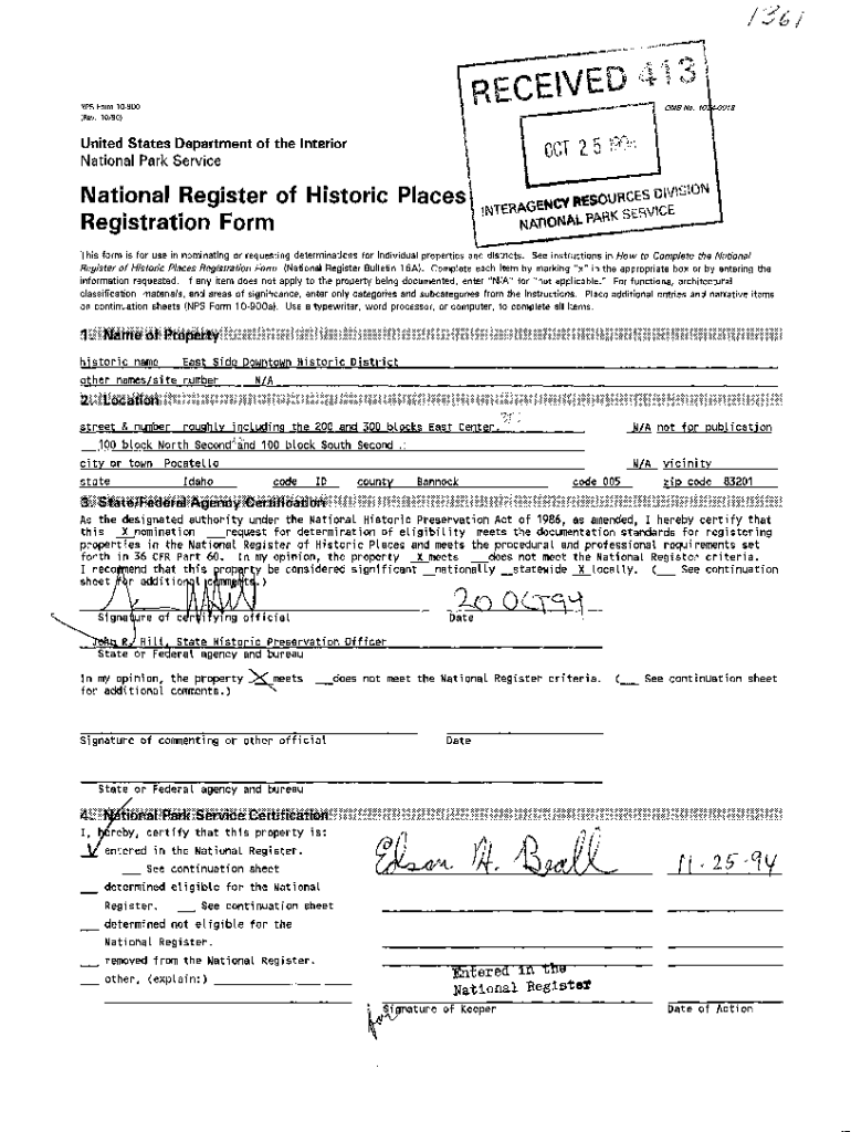 NPS Form 10900 (Rev. 10/90)OMB No. WXOOfSUnited States Department of the International Park ServiceNational Register of Historic Places Registration Form This form is for use in nominating or requesting
