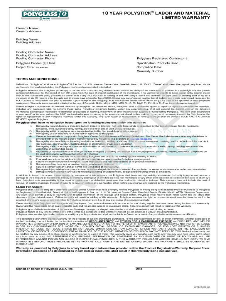 Get the free polyglass.us wp-content uploads30 YEAR POLYSTICK MATERIAL LIMITED WARRANTY SAMPLE - ...