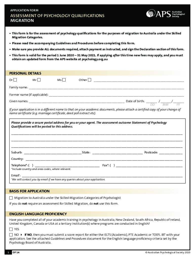 APPLICATION REASSESSMENT OF PSYCHOLOGY QUALIFICATIONS MIGRATION This form is for the assessment of psychology qualifications for the purposes of migration to Australia under the Skilled Migration