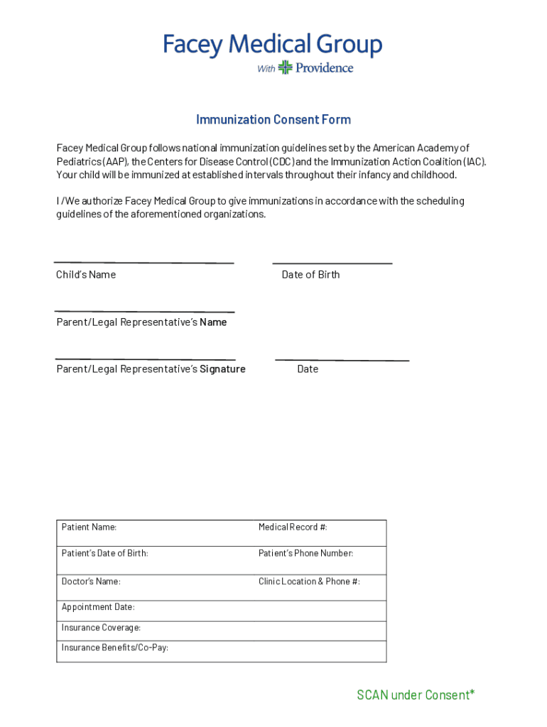 The form may require information such as name, date of birth, vaccine being administered, any allergies, previous immunizations, and signature of the person giving consent.