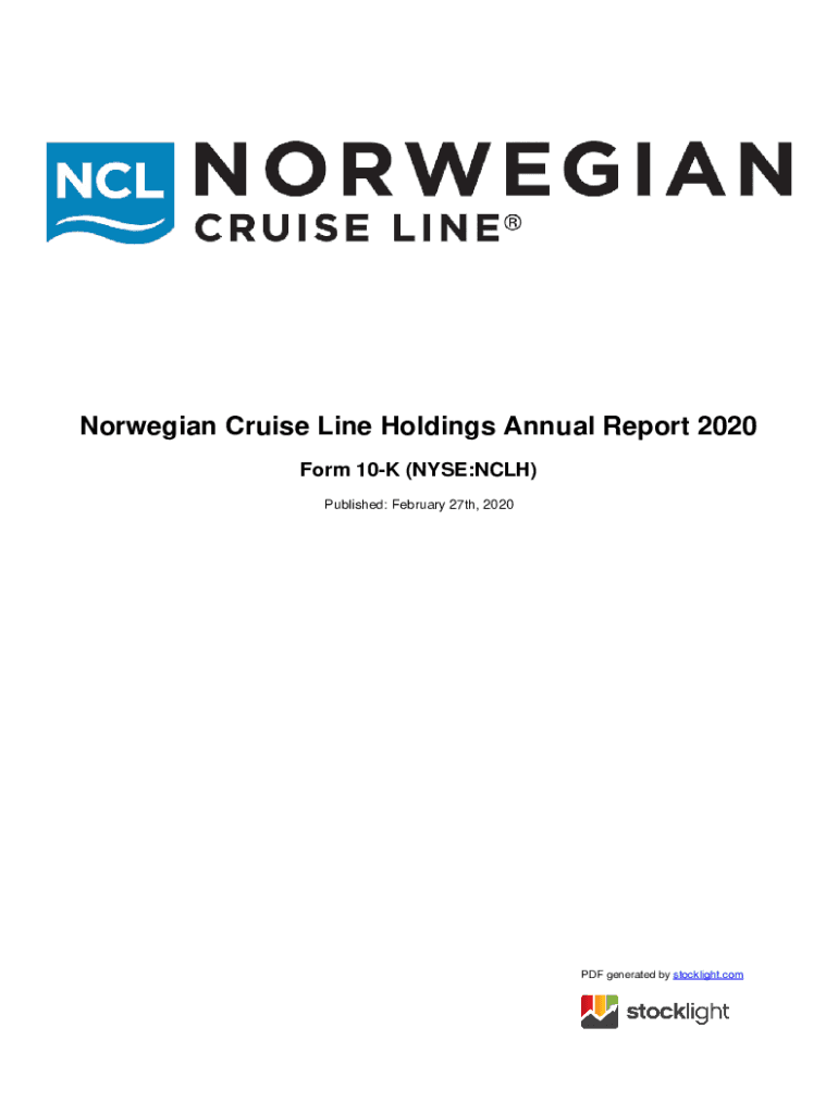 Norwegian Cruise Line Holdings Annual Report 2020 Form 10K (NYSE:BCLH) Published: February 27th, 2020PDF generated by stock light. Counted STATES SECURITIES AND EXCHANGE COMMISSION Washington, D.C.