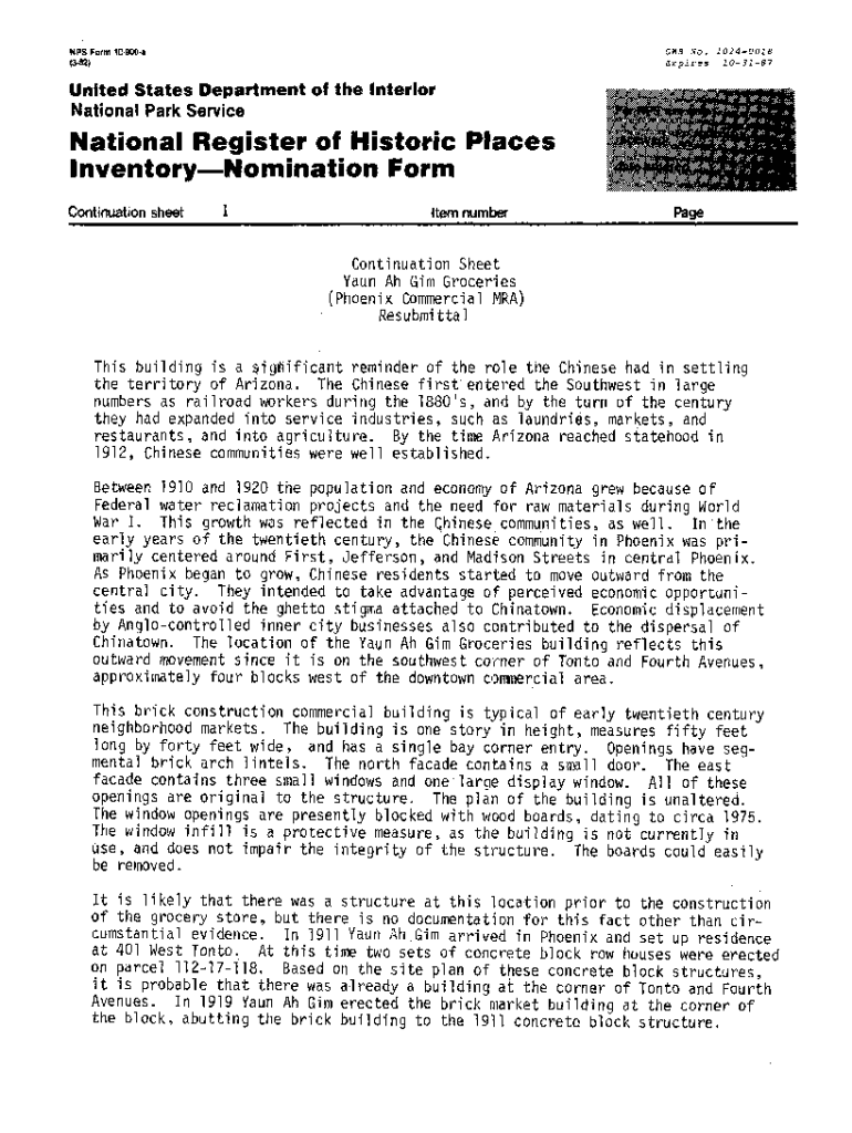NPS Form 10900a (382)0 MB No. 10240018 Expires 103187United States Department of the Interior National Park ServiceNational Register of Historic Places InventoryNomination Form Continuation sheet___1___Item