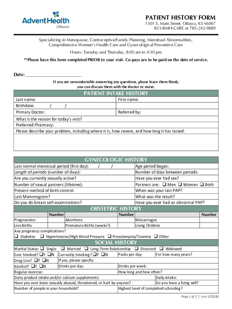 Any patient who is seeking medical treatment at AdventHealth may need to fill out the patient history form.