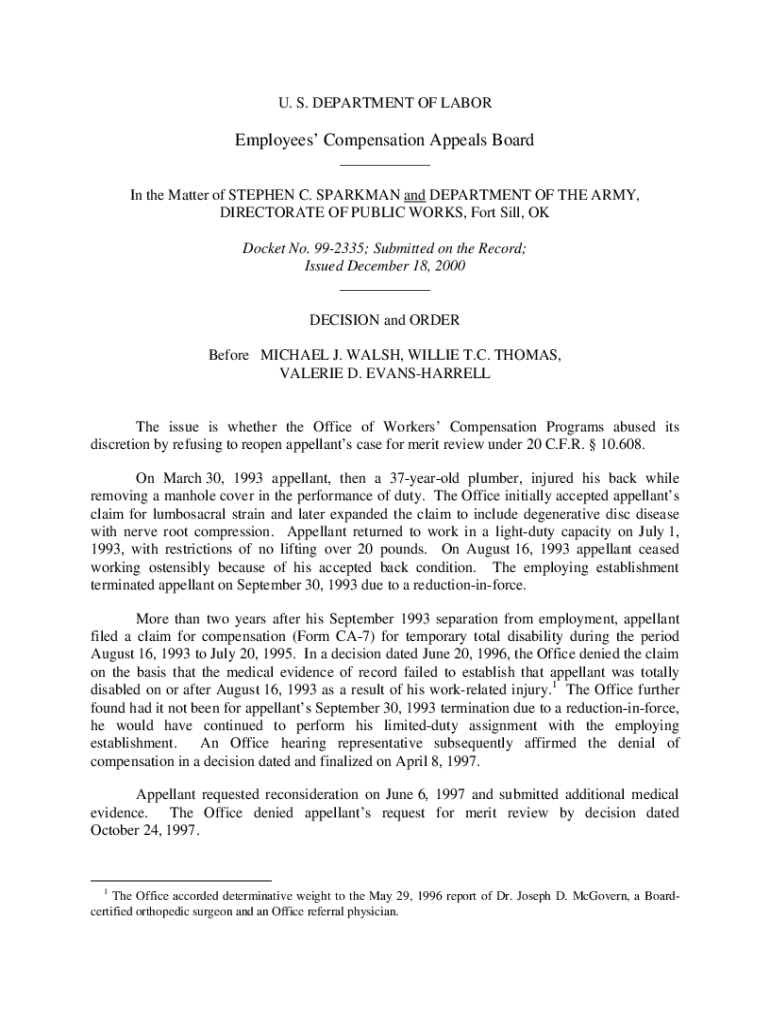 Get the free 99-2335: STEPHEN C. SPARKMAN and DEPARTMENT OF TH...