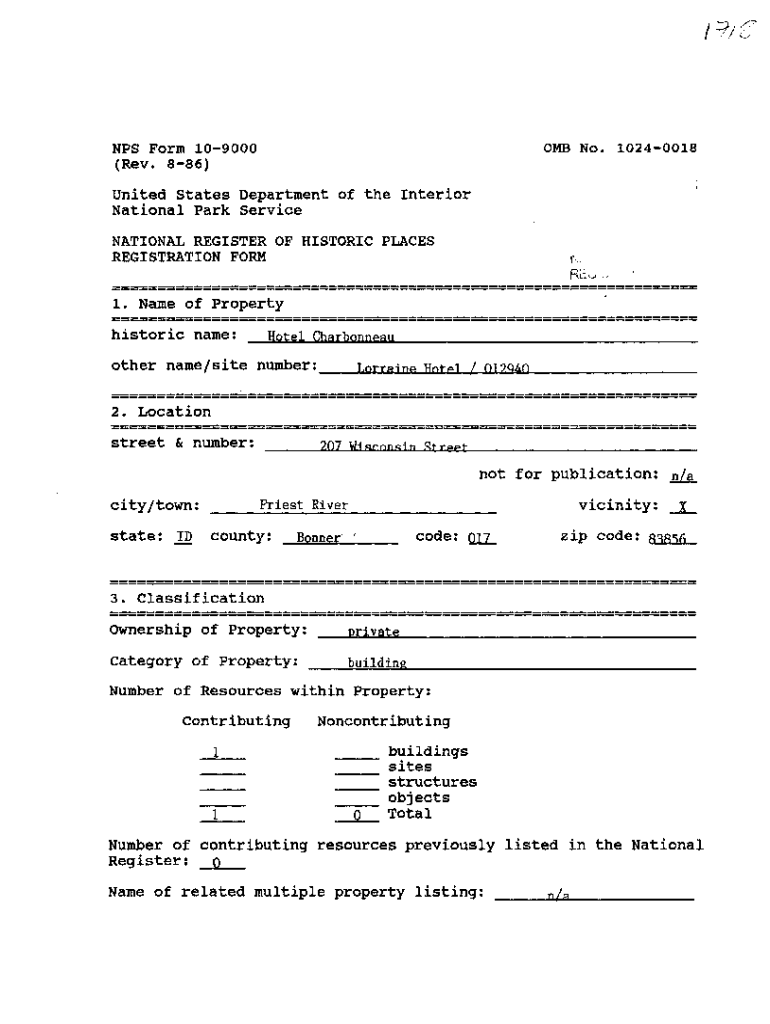 NFS Form 109000 (Rev. 886)OMB No. 10240018United States Department of the Interior National Park Service NATIONAL REGISTER OF HISTORIC PLACES REGISTRATION FORMfi1. Name of Property historic name:Hotel