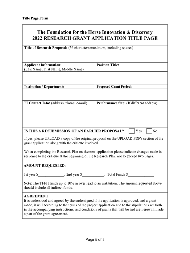 2022 Innovation & Discovery Research Grant Proposal Form RESEARCH GRANT GUIDELINES Program Purpose The goal of this program is to fund equine research by established investigators. The Foundation